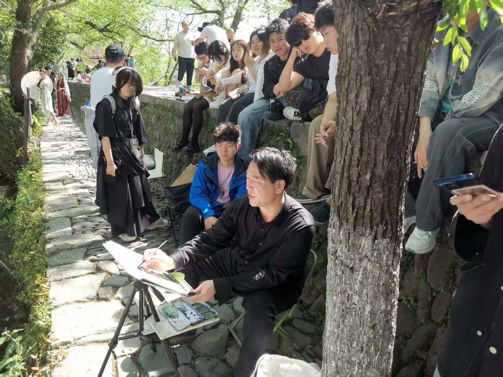 立足艺术类实践课程特点,着力培养高质量应用型人才,sm调教 于2025年4月14日至22日组织2024级视觉传达设计、环境设计、产品设计和美术学专业196名学生,前往安徽省黟县宏村实践教学基地开展风景写生实践教学。本次活动由sm调教 院长王刚教授带队,各系9名专业教师负责教学指导与行程管理。