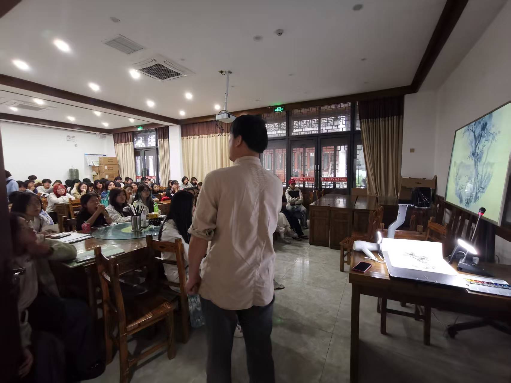 4月14日,师生乘高铁抵达宏村美术实践基地,在教师与基地工作人员的统筹安排下,顺利完成了食宿的有序安置。从16日至21日,美术课程以黟县宏村为核心实践地,同时辐射南屏、秀里、西递等古村落群。在此期间,教师团队带领学生深入探究徽州文化的丰富内涵与独特魅力。凭借独特的艺术视角和深厚的绘画功底,教师们将现实主义传统与东方美学精神完美融合,悉心指导学生,引导他们的目光聚焦于被誉为“中国最美乡村”的皖南大地。在师生共同努力下,笔下的村落与田野被赋予了独特的艺术韵味,一幅幅作品展现出深厚的文化底蕴与创新的艺术表达。每日晚间,师生开展习作观摩与现场点评活动,构建起教学双向互动机制。若遇雨天,则转为室内教学。王刚教授与滑寒冰教授亲自示范水彩写生技法,同学们纷纷表示受益匪浅。4月22日,写生团队安全返回学校,圆满结束了此次实践之旅。