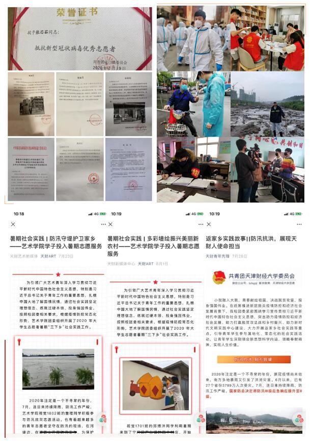 1.将家国情怀与学生志愿活动融合。组织青年党团员前往所在社区报到,助力疫情防控,据不完全统计,参加战疫学生党团员志愿者50余人,收到乡县级以上表扬信十余封;组织暑假返家乡社会实践活动,sm调教 学子主动走上河堤抗洪防汛,展现天财学子使命担当,使自发深入社区志愿服务等成为常态。