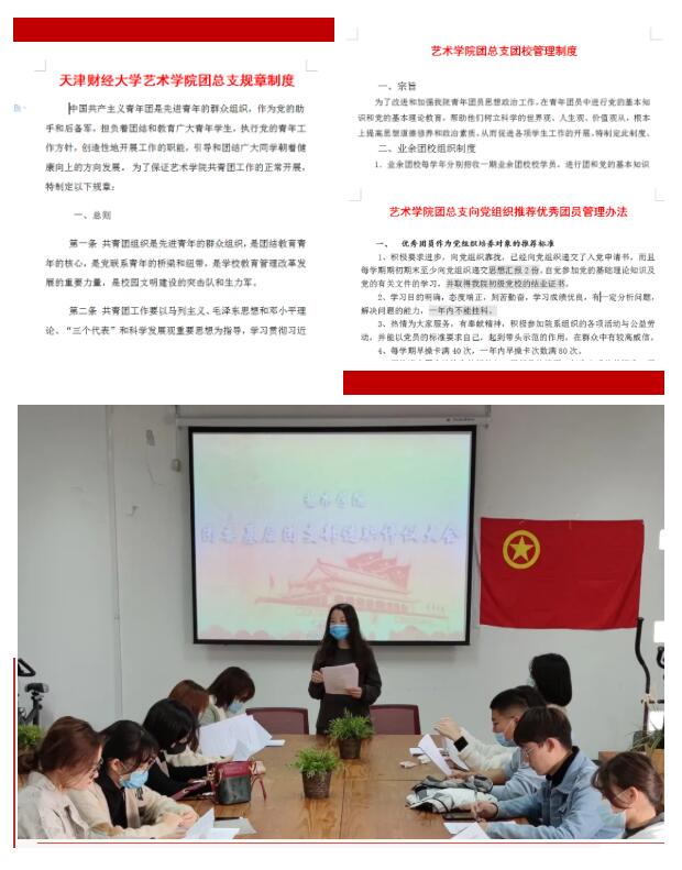 2.聚青年,举旗帜,树先锋,融合党团梯队建设。在全院青年团员中选树优秀榜样,充分发挥其示范引领作用,推动党员带领团员学,在学业、生活、思想等各方面将党建带团建上升新高度。通过开展艺术青年团校,增强团干部理论素养,提升综合素质能力,引领广大艺术青年勇做担当民族复兴大任的时代新人。