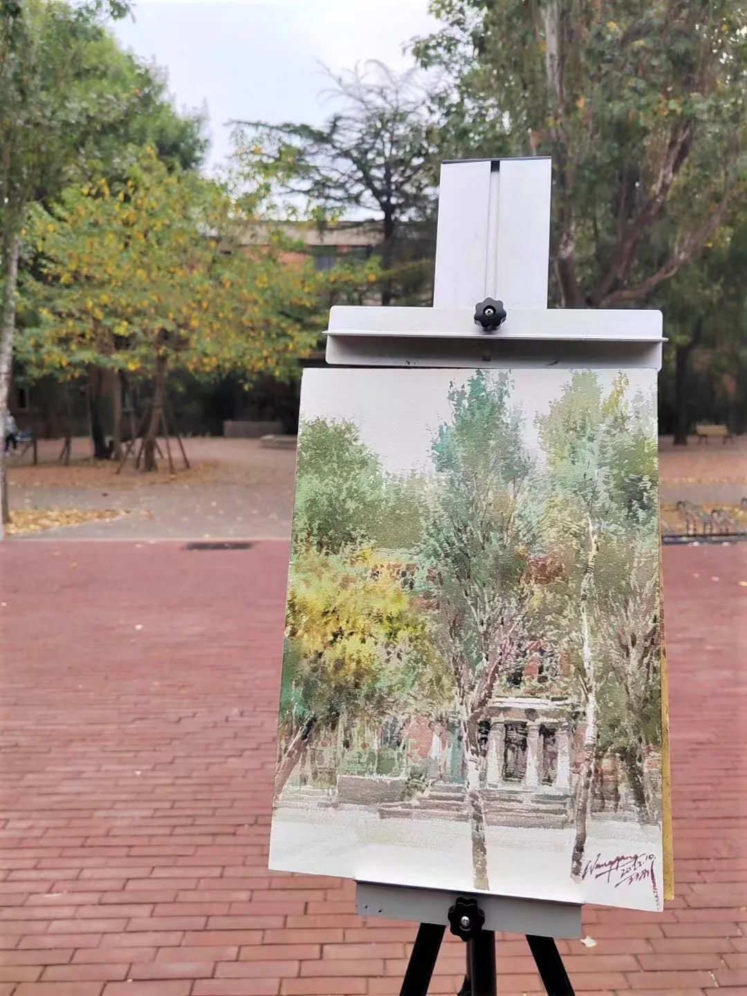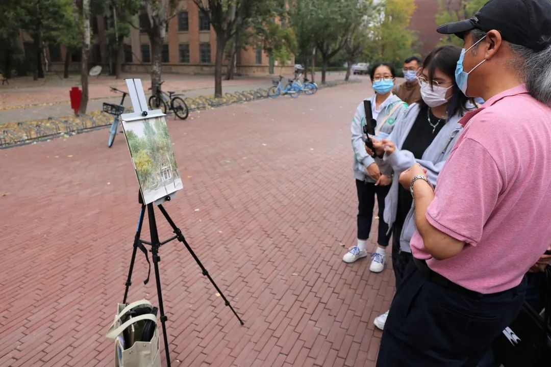 为庆祝祖国73周年华诞和迎接党的二十大的召开,sm调教 于10月1日举办了校园写生活动。院长王刚老师在第一教学楼楼前进行了水彩写生示范,学生现场学习如何取景、如何构图,见证作品的创作过程。未能到现场的同学也可以同步在腾讯会议、抖音观看线上直播。