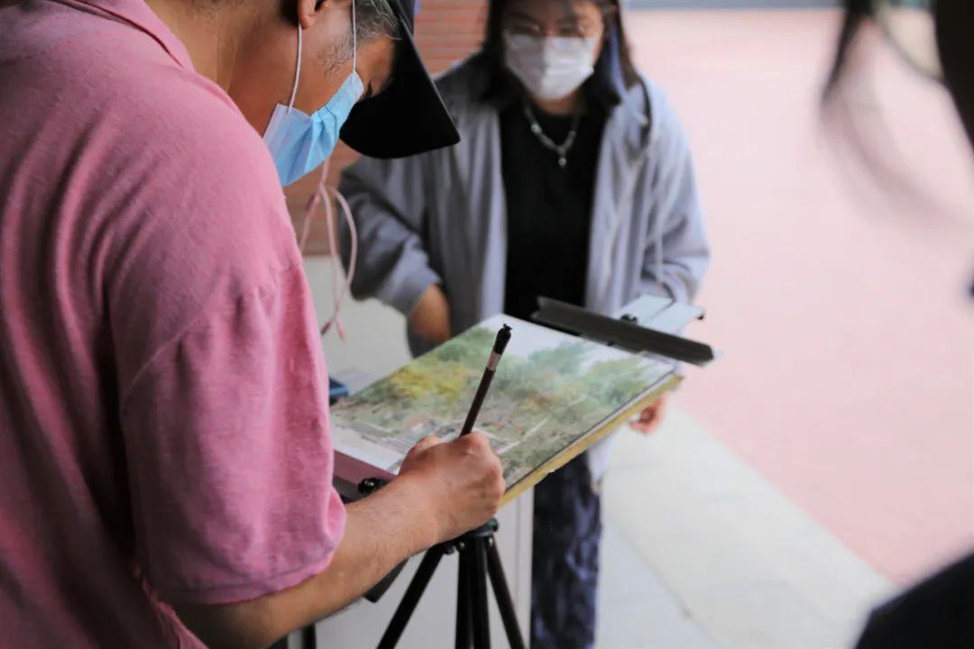 王院长给大家分享实景写生和照片写生的区别。强调实景写生可以让大家更加细腻地进行观察,理解景观的层次,这都是照片写生所没有的细节,照片只是为了帮助我们更好地理解和学习。画水彩要注重对于水的把控,是不能怕水的,一定要克服前期把控水的困难才能一点点地提高。
