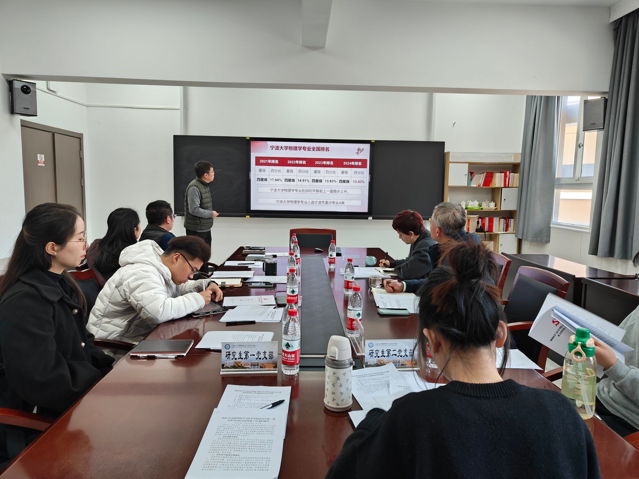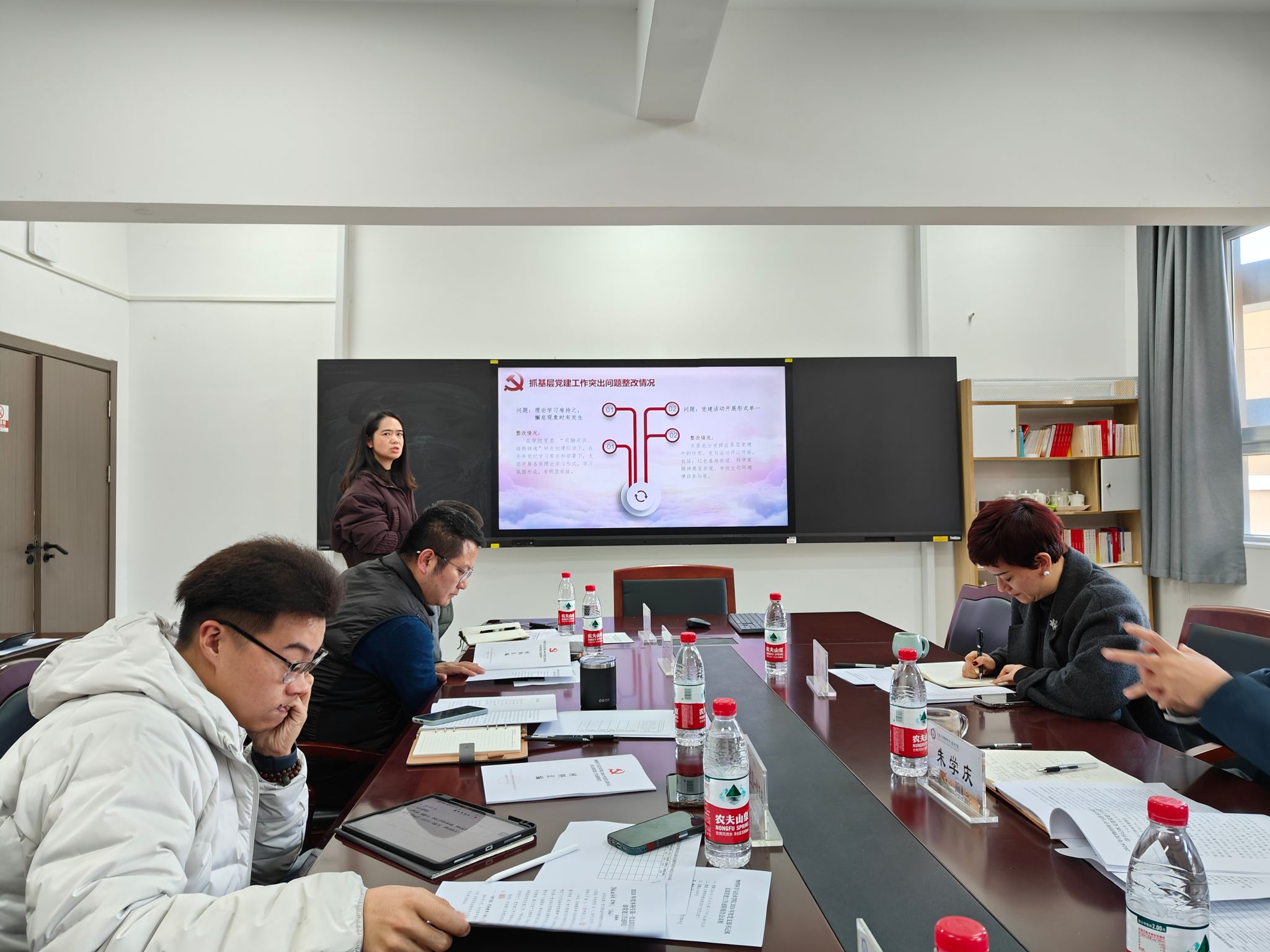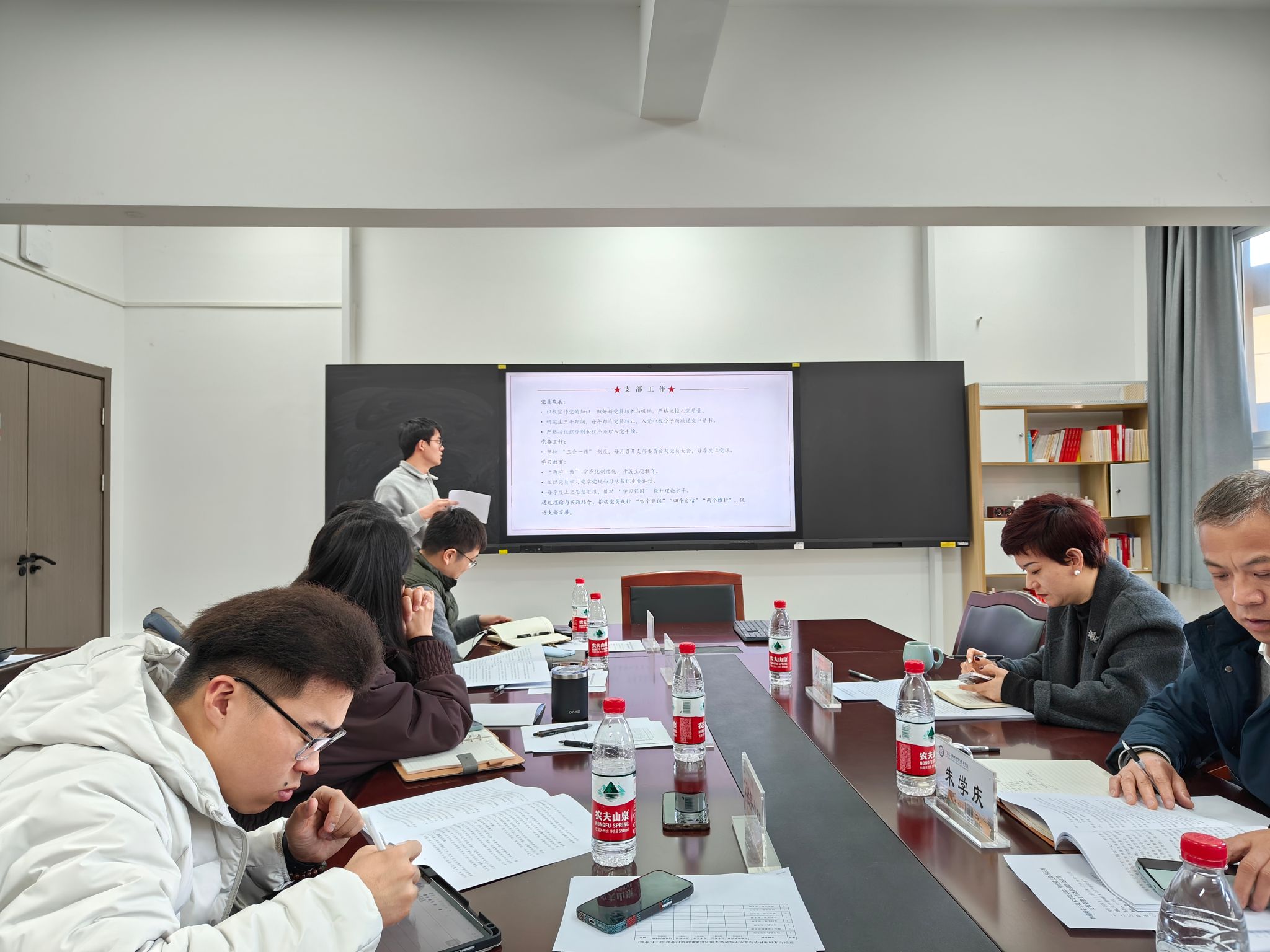 1月13日,sm调教 党委在龙赛理科楼北楼228“党员之家”召开2024年度党支部书记抓支部党建工作述职评议会,sm调教 党委书记朱学庆、副书记刘小娣、各党支部书记参加,会议由朱学庆主持。
