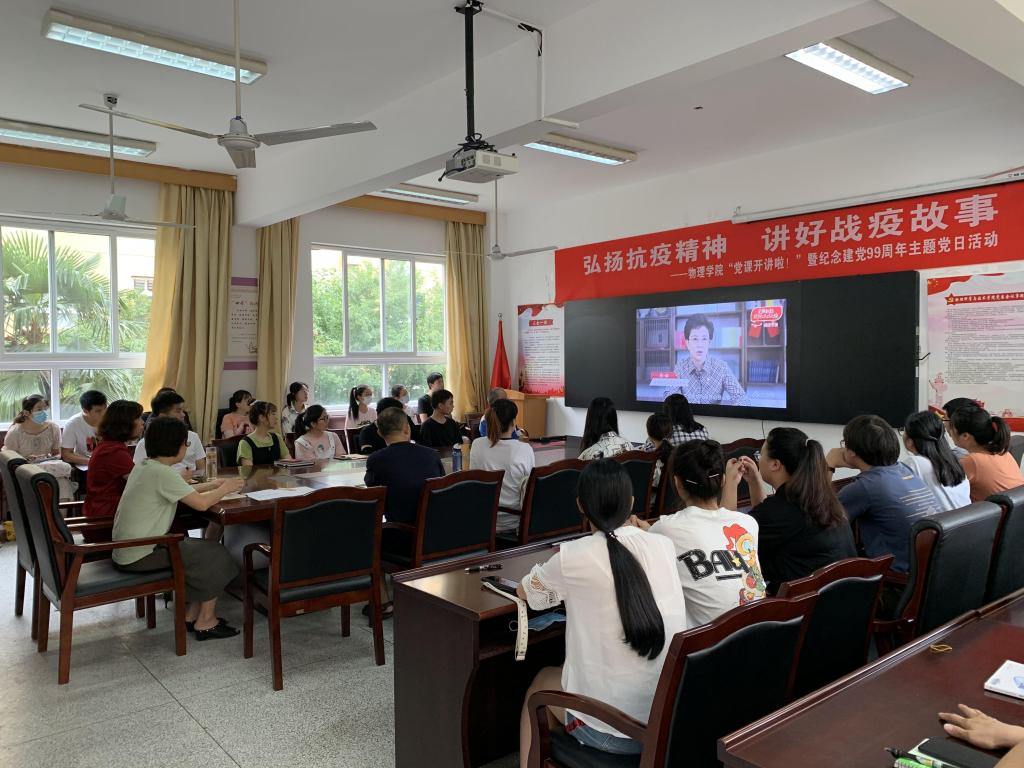 为进一步学习贯彻习近平总书记关于“让党旗在防控疫情斗争第一线高高飘扬”的重要指示精神,提升学生党员的爱国情感,深入宣传疫情防控的感人事迹和生动经验。7月1日,物理sm调教 组织50余名师生党员在党员之家集中观看《高校党组织战“疫”示范微党课“七一”专场》。