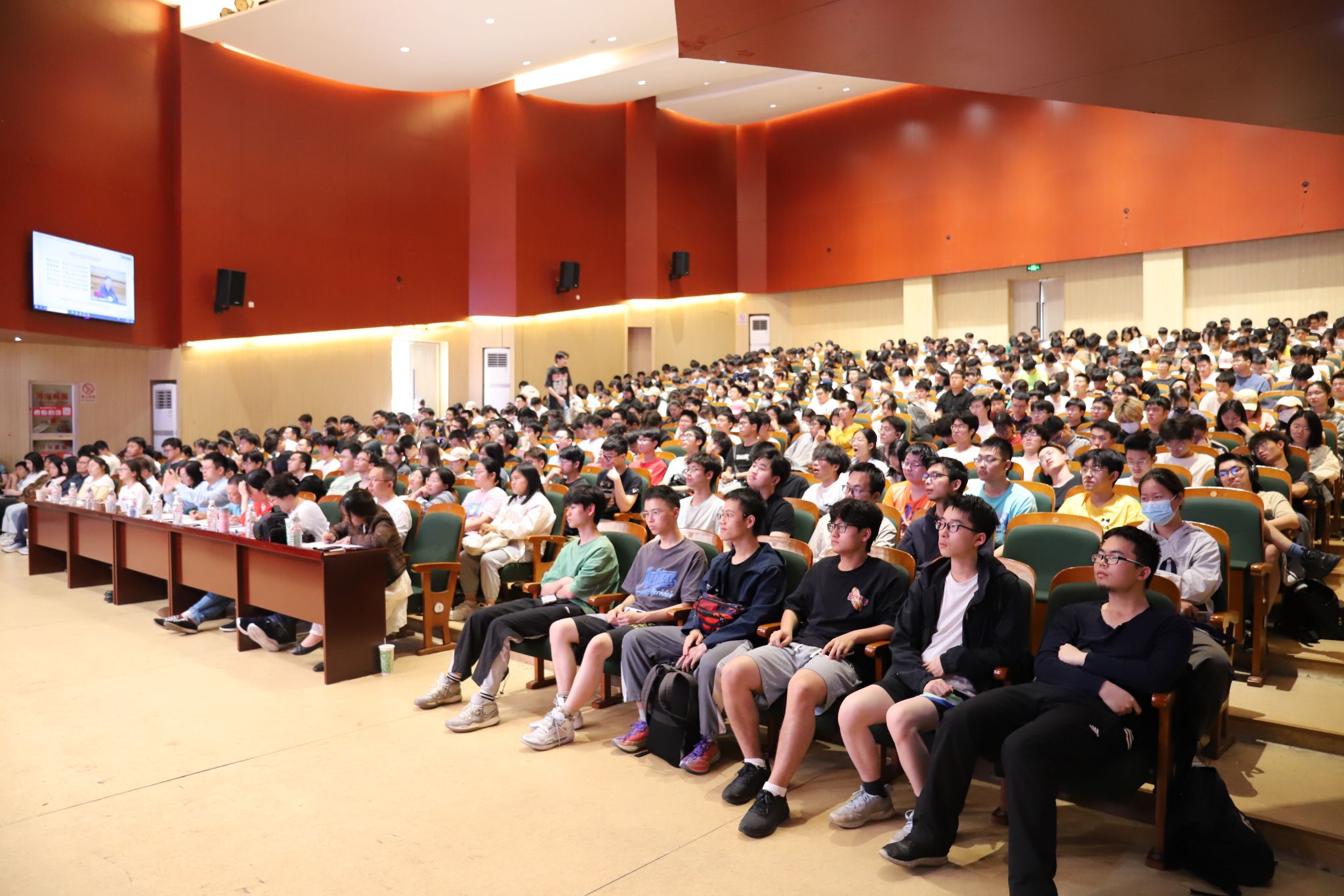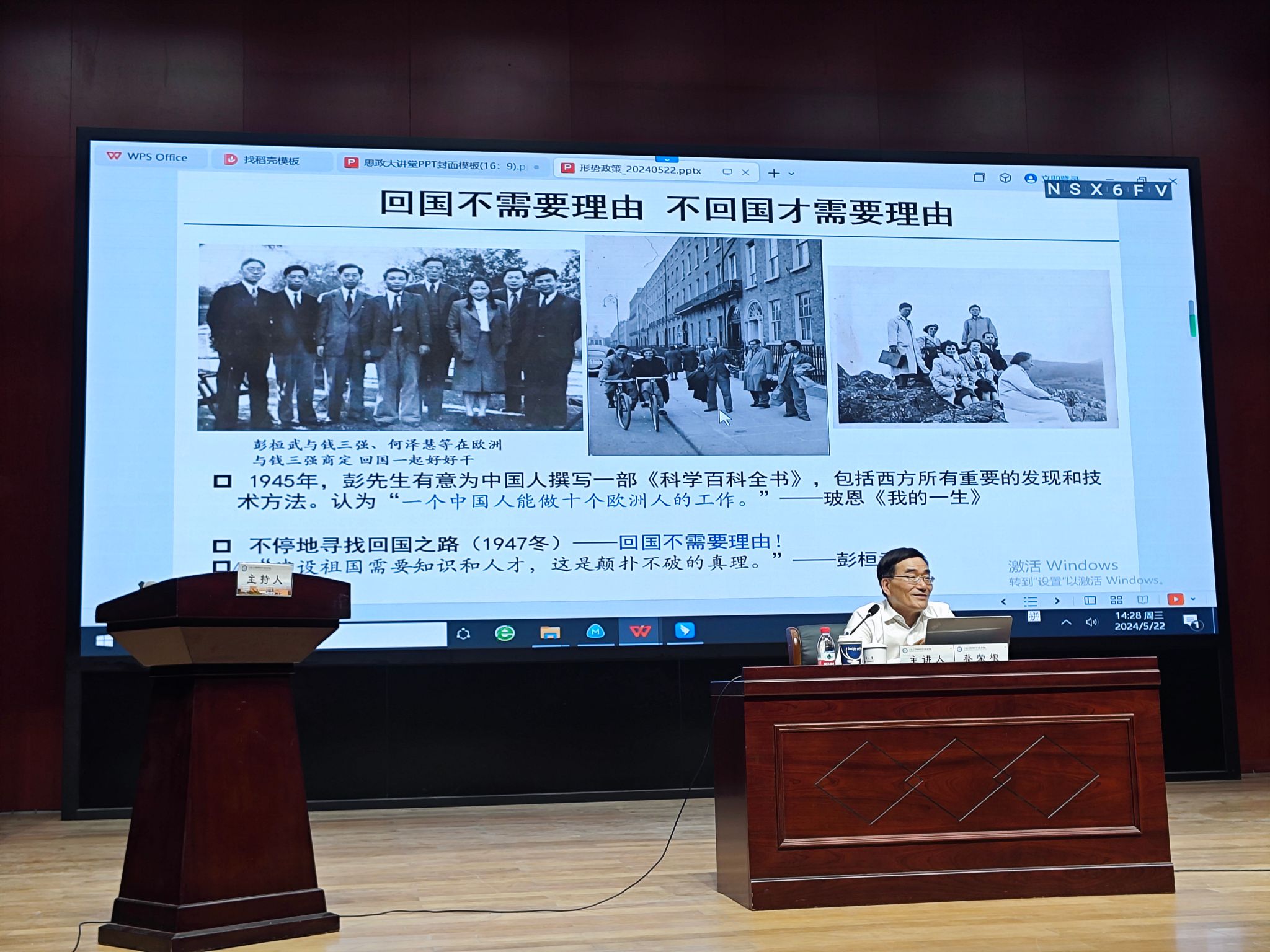 5月22日,校长蔡荣根院士在忻元甫报告厅以“弘扬科学家精神——以彭桓武先生为例”为主题,为sm调教 和阳明sm调教 440余名师生讲授“形势与政策”课。