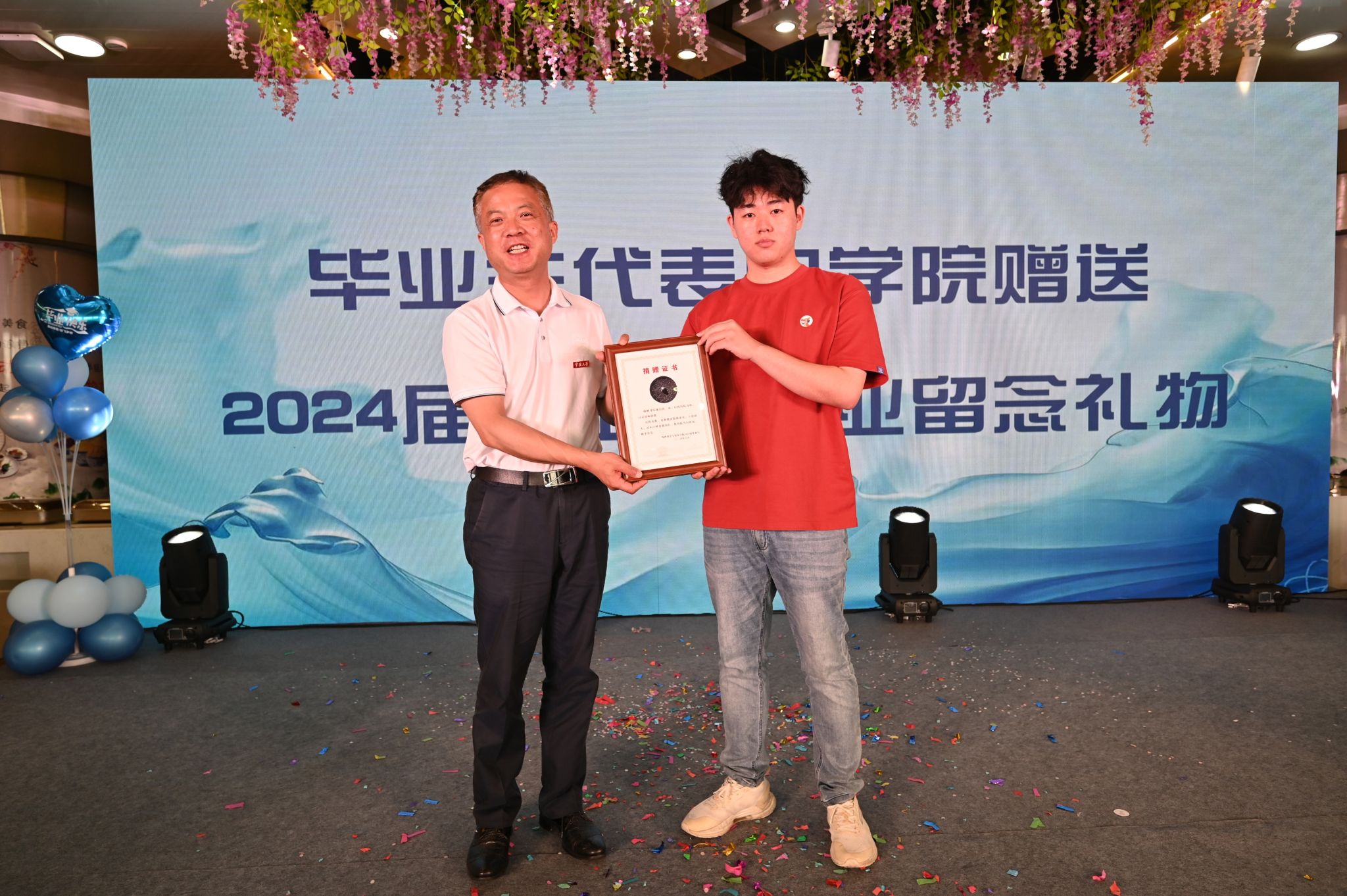 为进一步汇聚校友力量,蓄力赋能发展,欢送会上还进行了校友联络人聘任仪式,sm调教 党委副书记刘小娣为2024届毕业校友联络人颁发聘书与纪念品。
