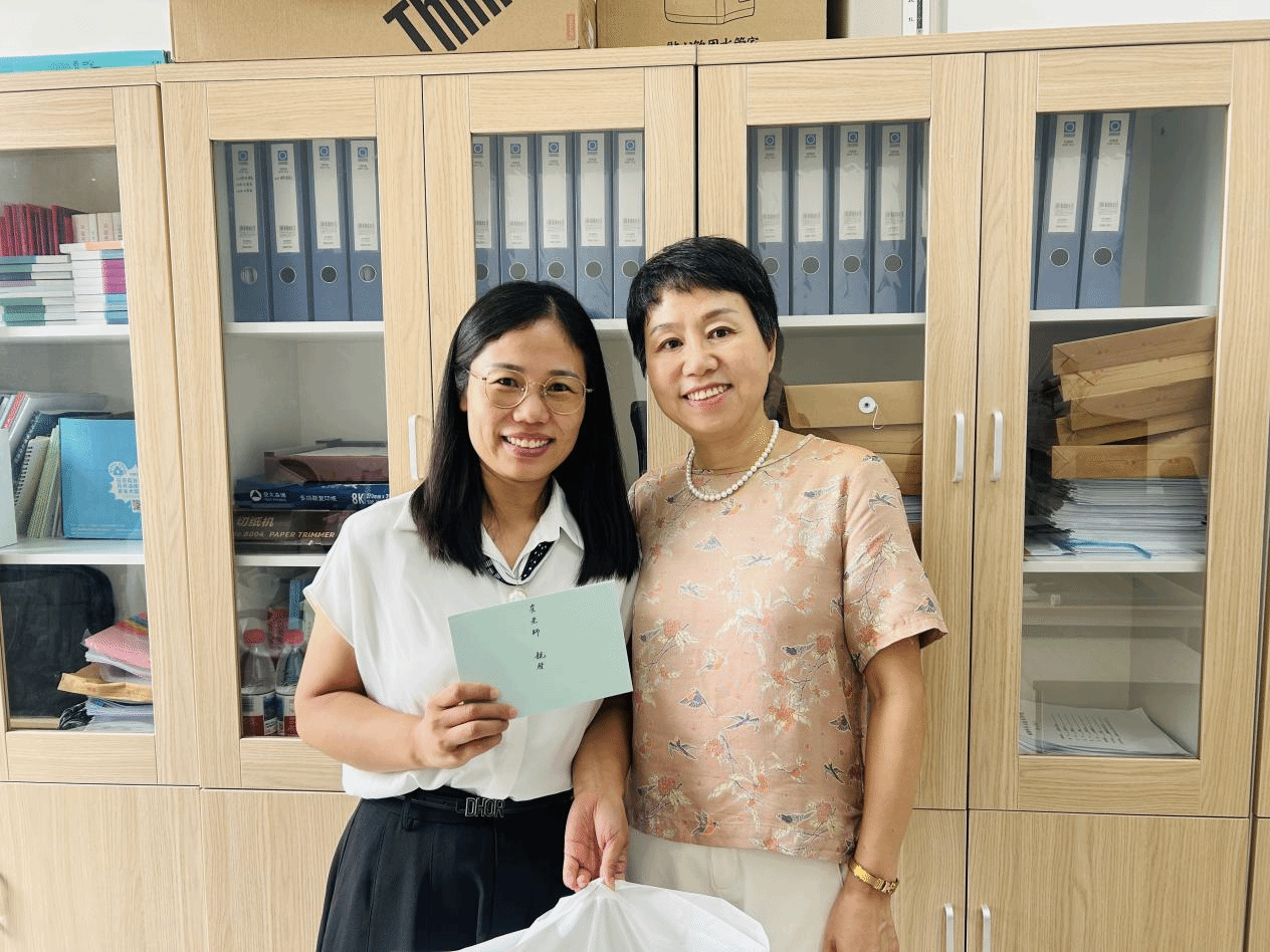 上午的龙赛理科楼里,充满着“教师节快乐”的祝福声。sm调教 执行院长段香梅、党委副书记刘小娣一行向工龄满10年、20年、30年、40年的老师们逐一送上精心准备的祝福卡片与伴手礼品。