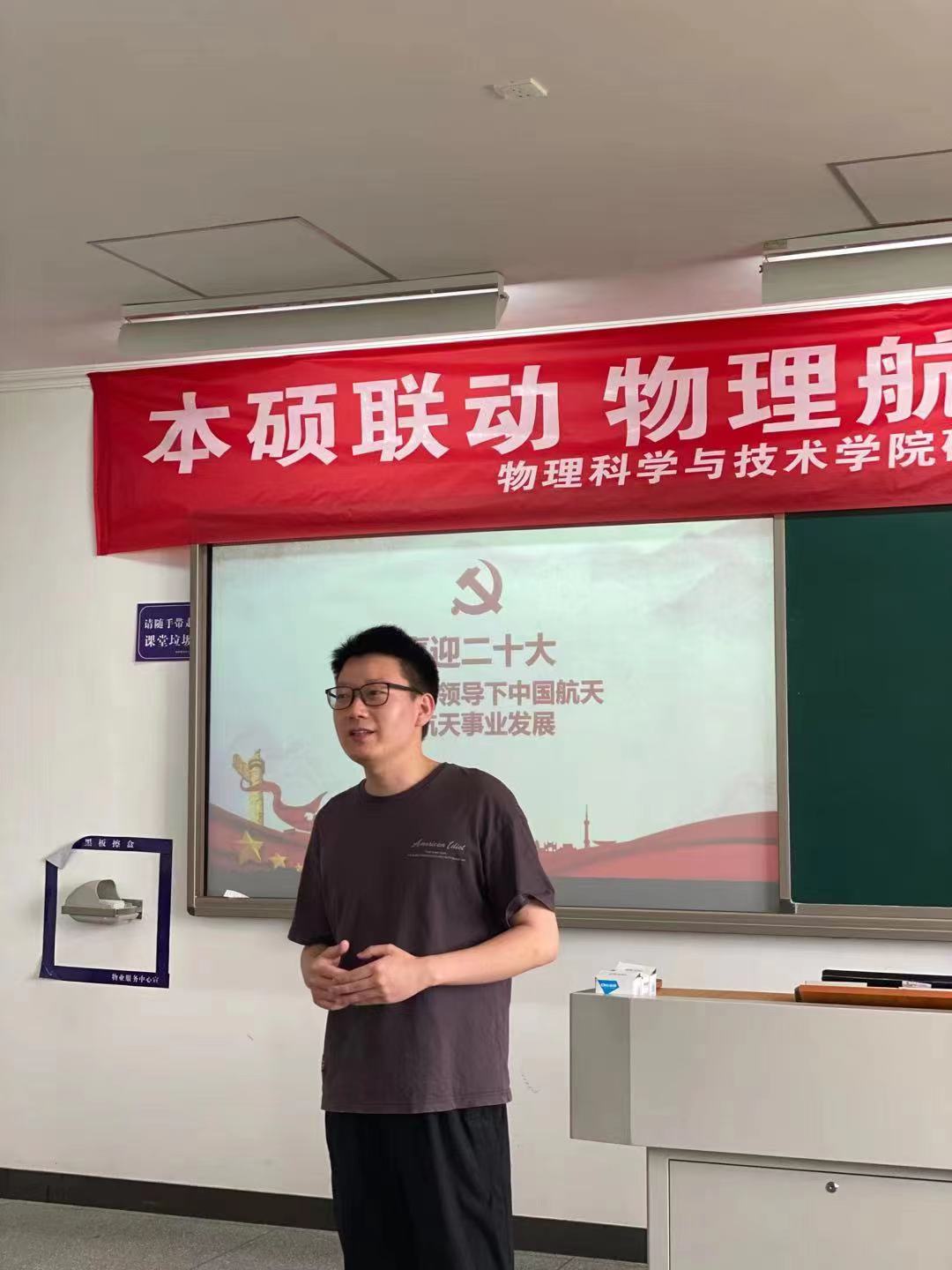 为迎接党的二十大胜利召开,进一步推进党史学习教育,深入学习神州十四逐梦星辰大海的爱国精神,增强全体党员的党性意识,不断提升自身使命感和政治责任感,6月16日下午,物理sm调教 各学生党支部在8#503教室联合举办了以“喜迎二十大—物理航天新征程”为主题的党日活动。本次活动弘扬了sm调教 党支部“本硕联动、支部融合”特色党建模式优良传统,由研究生第一、第二党支部发起,本科党支部、sm调教 各团支部共计60余人积极参与,以本硕联动、党员先行和广发倡议的方式,在全院学生中营造爱国爱党、昂扬向上、团结奋进的浓厚氛围。
