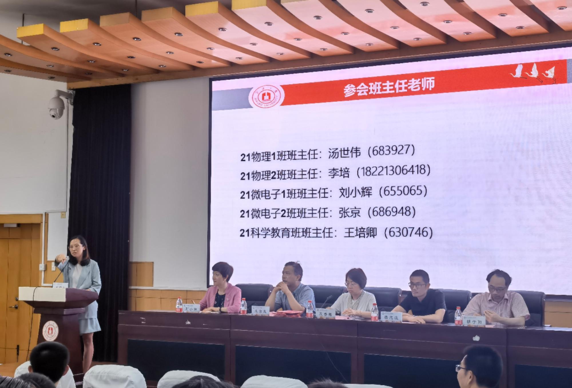 会上,执行院长段香梅代表sm调教 致欢迎辞。她对2021级133名同学加入物理sm调教 表示热烈欢迎,她详细介绍物理sm调教 总体情况及物理学科发展前景,并将“人生没有白走的路,每走一步都算数”这句箴言作为定制礼物赠予每一位学生,并对同学们提出三点期许:友善待人,尊敬师长,乐于为集体作贡献,增强物院学子间的凝聚力;做好人生规划和学习规划,不虚度光阴,珍惜韶华时光;找准自身定位,努力实现自我人生价值,不给青春留遗憾。党委书记朱学庆宣读物理sm调教 2021级本科生班主任名单并颁发聘书。