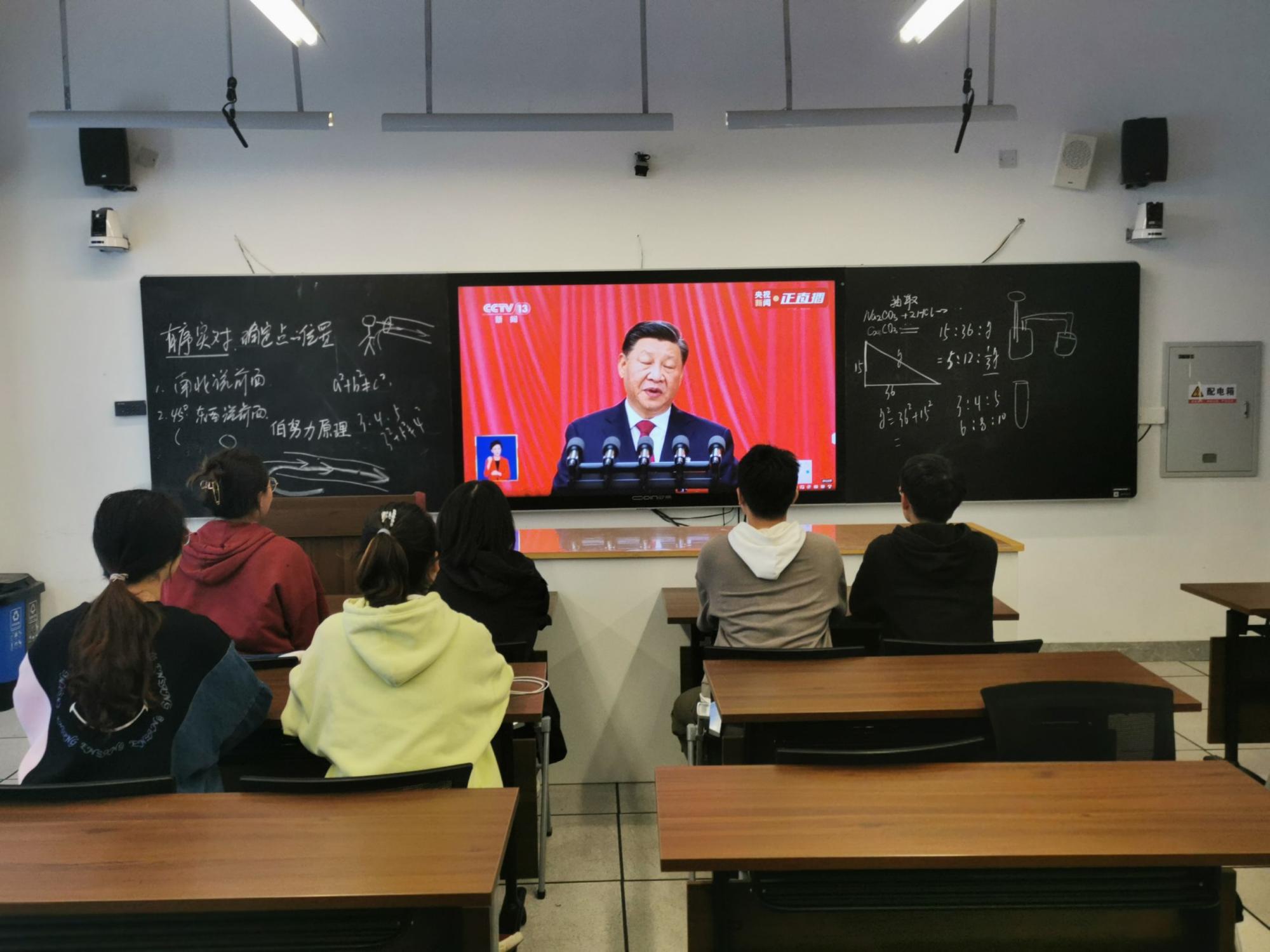 上午10时,sm调教 党委组织领导班子成员、师生党员、团员代表、辅导员等70余人在314会议室集中收看了二十大盛况。各班级党、团支部也结合实际,通过网络、手机收看了开幕会。
