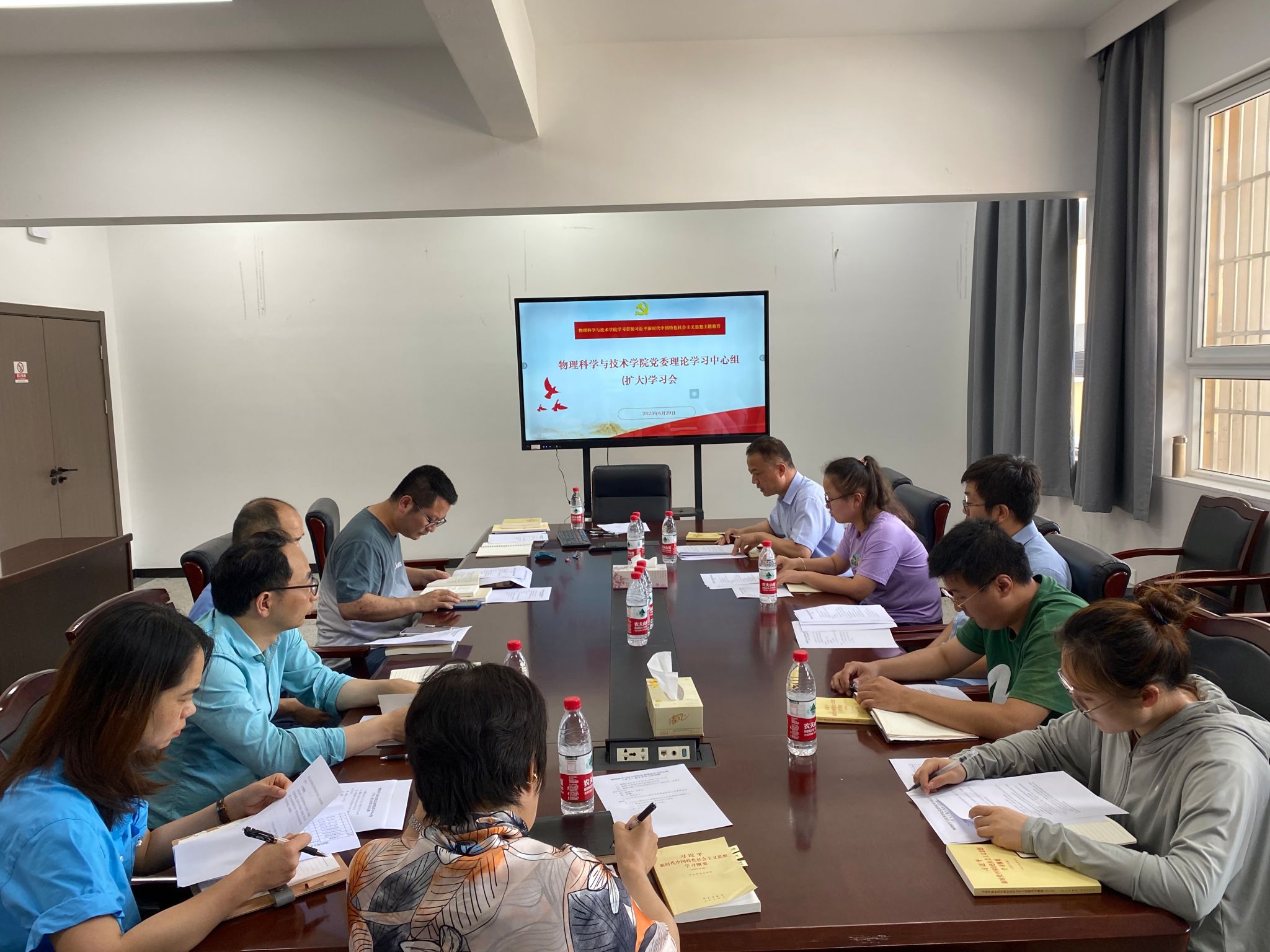 6月29日,sm调教 在龙赛理科楼北楼228“党员之家”召开党委理论学习中心组2023年第11次集中学习(扩大)会。会上学习传达了习近平总书记在文化传承发展座谈会上的重要讲话精神,同时围绕“建设社会主义文化强国”主题开展《习近平新时代中国特色社会主义思想学习纲要》集中学习,sm调教 党委理论中心组成员和各党支部书记参加了此次会议。