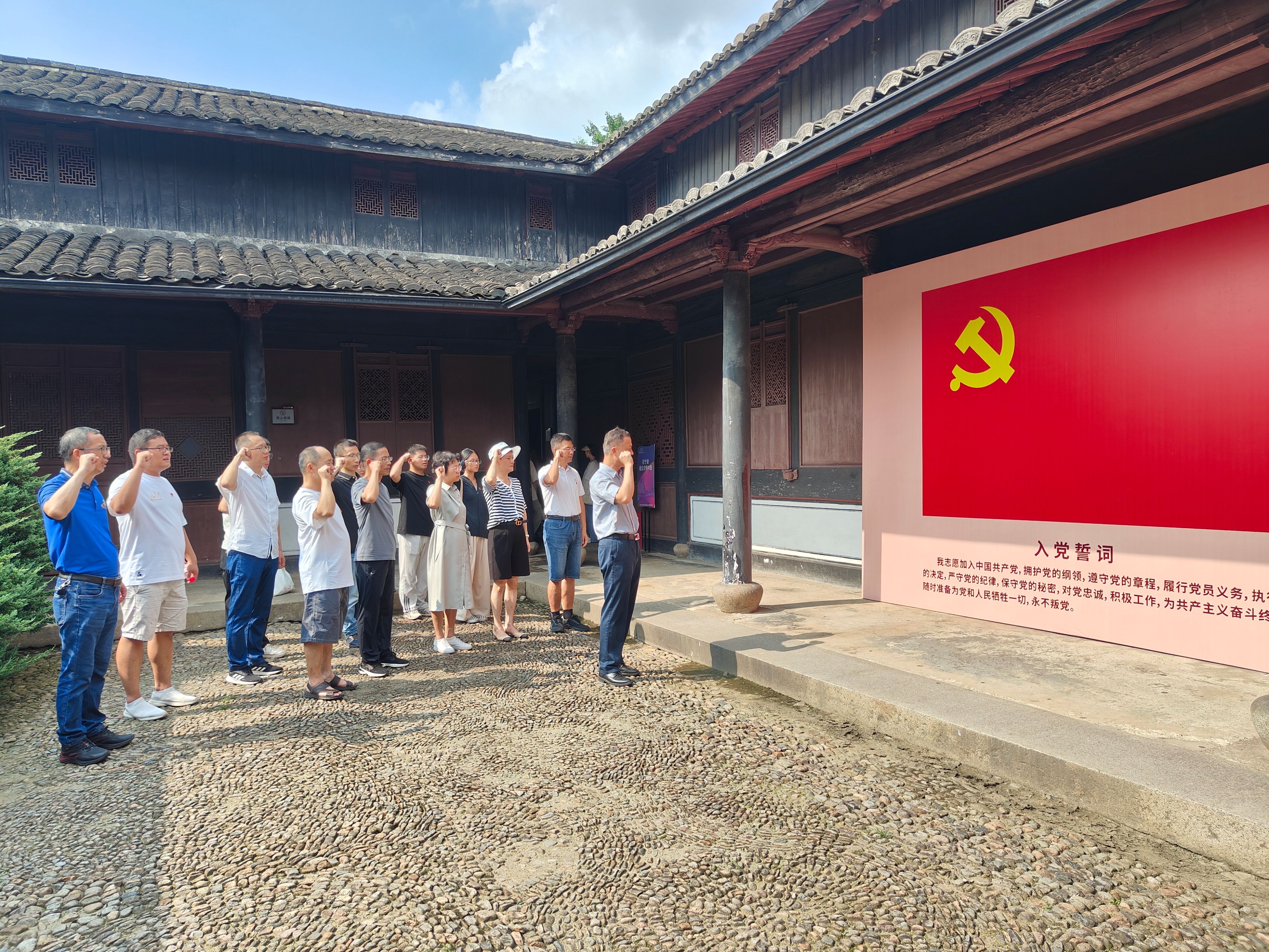 第三站来到在浙东抗日文化旧址群,师生党员们依次参观了浙东革命根据地纪念馆、何克希将军纪念室、浙东银行、浙东报社等旧址,一件件珍贵的革命文物印证着在抗日战争那段艰苦奋斗的岁月里,革命先辈们在极其严酷的环境中,一边进行英勇顽强的军事斗争,一边开展政治、经济、文化建设等工作。通过重温横坎头村的红色革命历程,先辈们筚路蓝缕、一往无前的开创精神,令师生们深受触动。在革命旧址的庭院,sm调教 党委书记朱学庆带领大家面对党旗重温入党誓词,时刻牢记共产党人的初心使命。