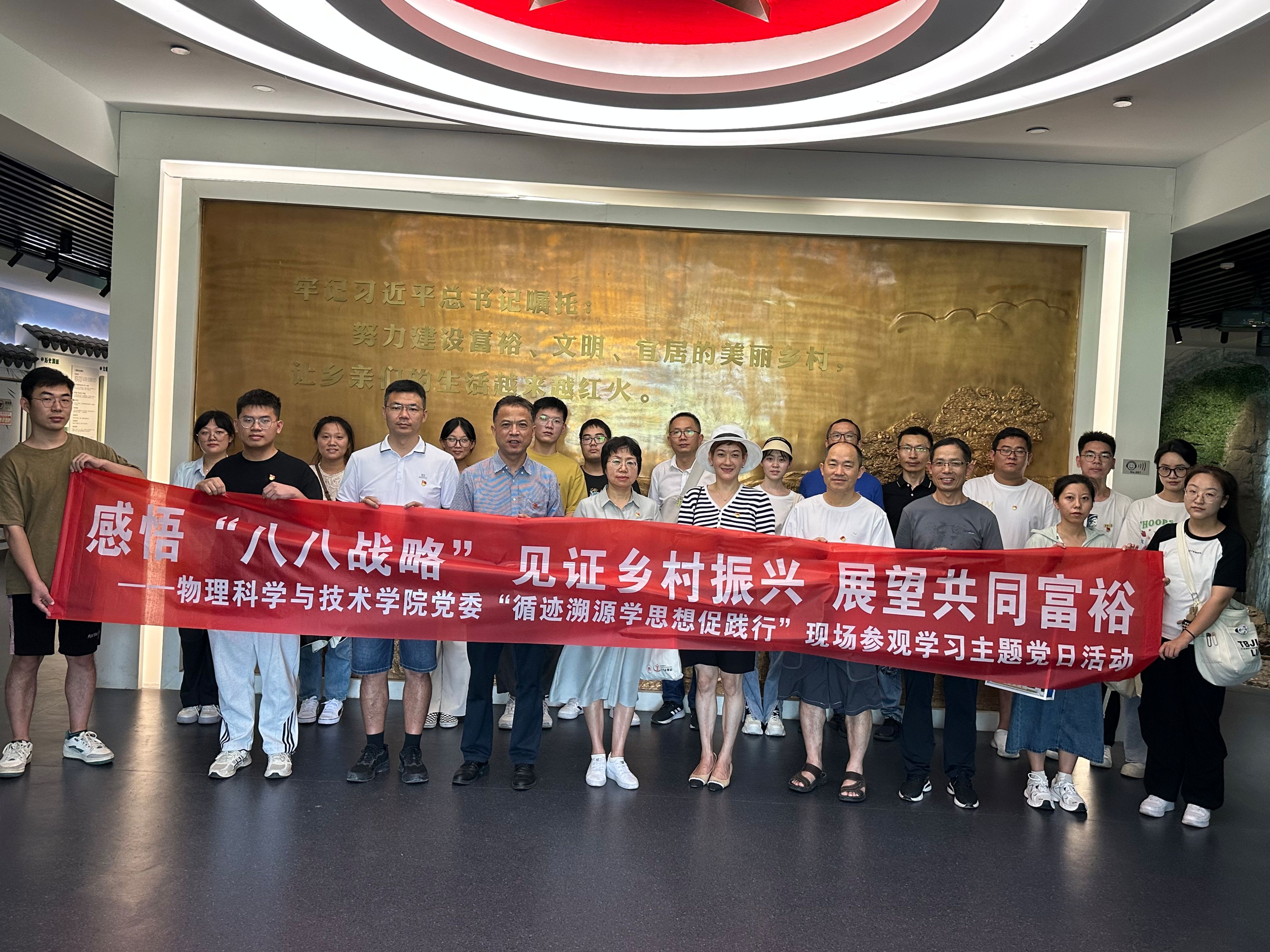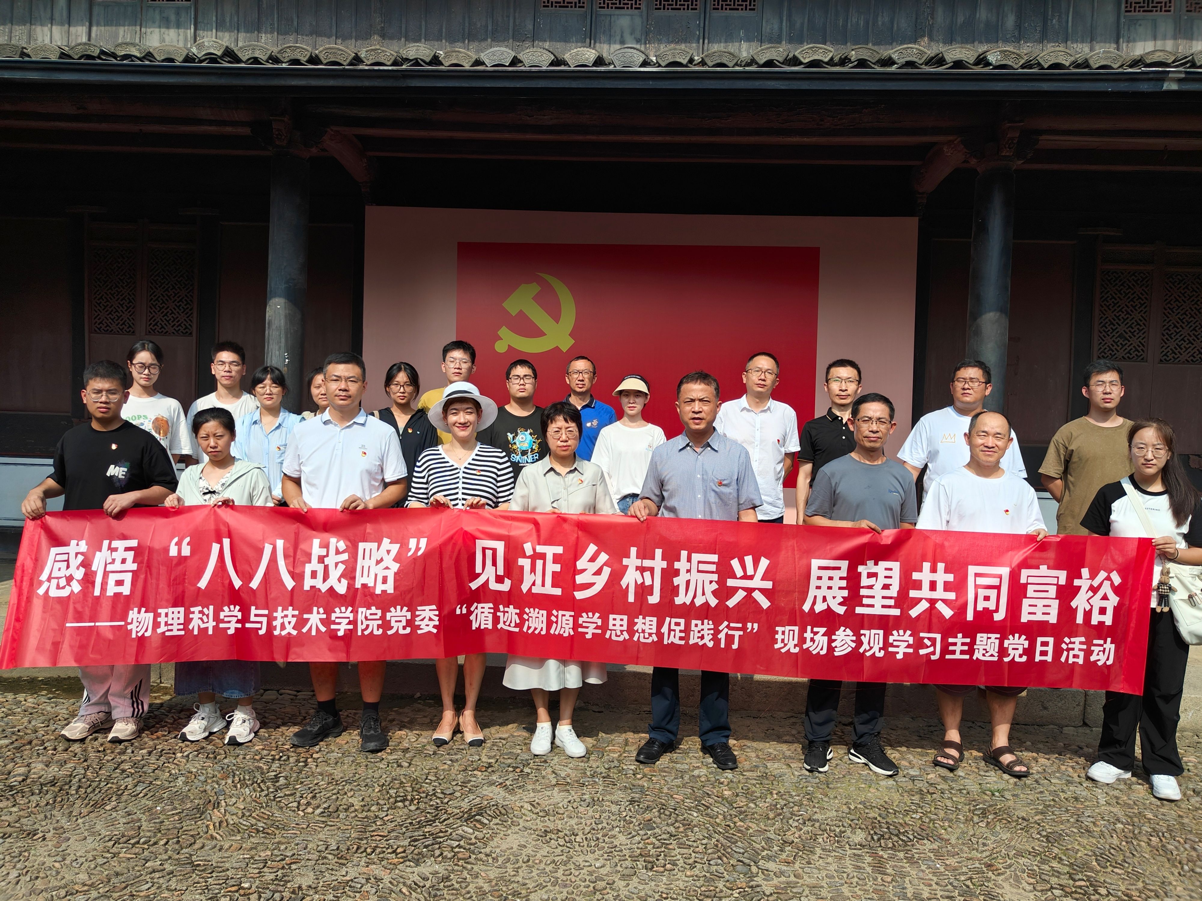 为进一步深入学习贯彻习近平新时代中国特色社会主义思想,引导师生党员重走习近平浙江足迹,在循访中体悟“八八战略”实施20年来的浙江实践,感受习近平新时代中国特色社会主义思想的真理伟力,凝聚奋进中国式现代化赶考路的磅礴力量,8月8日,sm调教 党委赴余姚市梁弄镇横坎头村开展“循迹溯源学思想促践行”学习活动暨“感悟‘八八战略’,见证乡村振兴,展望共同富裕”主题党日活动,走进新时代文明实践站、余姚市红廉馆、浙东抗日根据地旧址群、“浙东红村”风貌区等地,实地体验“红色引领、绿色发展”的乡村振兴之路,物理系教师党支部、行政教工党支部、研究生第一党支部的师生党员参加。