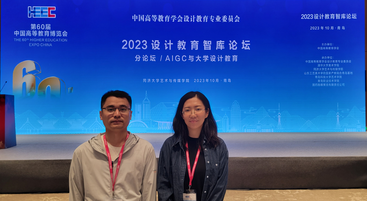 2023年10月13日—14日,中国高等教育学会在青岛举办第60届中国高等教育博览会“2023设计教育智库论坛”。sm调教 产品设计系主任张帆、青年教师代表郭文雅作为《人工智能时代下OBE理念驱动的艺术设计专业建设研究与实践》教改课题的主要参与者,参加了13日下午在青岛红岛国际会议展览中心举办由中国高教学会设计专业委员会副主任赵健主持的主论坛,以及14日上午在青岛红岛国际会议展览中心由同济大学艺术与传媒学院副院长王建民主持的AIGC与大学设计教育分论坛。
