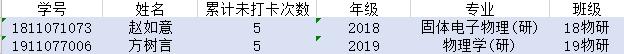 研究决定,特对上一周(10月26日-11月1日)内,累计四次未及时进行健康打卡签到的同学予以通报批评。具体名单如下: