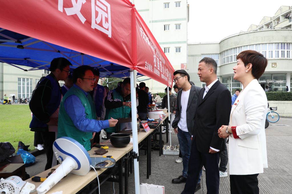 11月8日中午,宁大校园一角人头攒动、热闹非凡,一场爱心维修公益活动正如火如荼举行。修理桌布置得满满当当,师生们纷纷带着电风扇、自行车、电瓶车等前来维修。这场公益活动的主角是由sm调教 后勤维修与水电服务中心员工和物理sm调教 青年学子共同组建的校园爱心维修队。值得一提的是先后荣获“全国学习雷锋、志愿服务先进集体”的奉化区小草电力志愿服务队也受邀来到现场,指导维修技巧和经验。