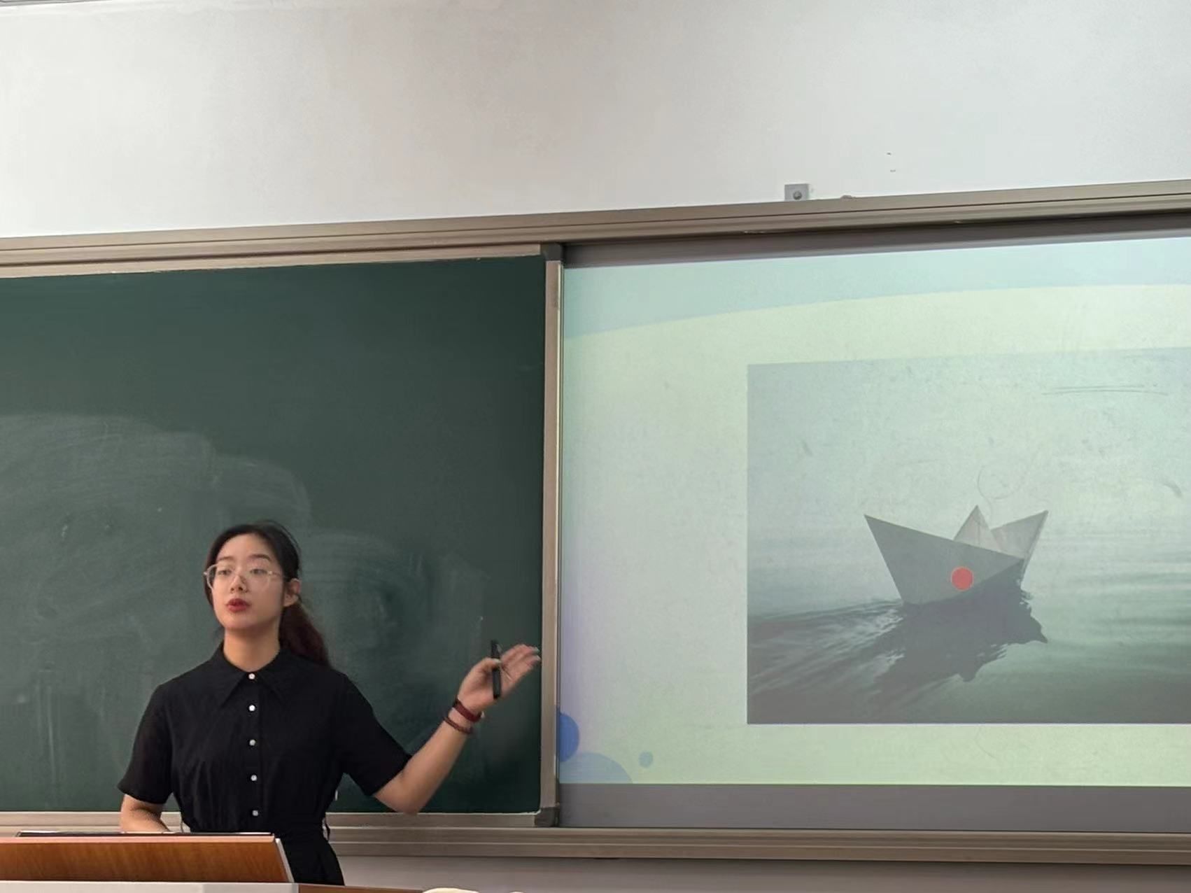 当天的决赛共分为“即席演讲”和“模拟上课”两个环节进行。选手们首先随机抽取演讲题目并准备,随后进行3分钟的即席演讲,演讲主要考察选手对于题目的理解准确度、临场反应能力、逻辑性以及语言表达能力。随后,选手们结合PPT进行10分钟的模拟授课,主要考察参赛选手的教学设计、多媒体课件制作、讲课与板书等方面的能力,并由评委老师进行打分。各参赛选手准备充分,教学过程设计合理,语言表达准确生动,教学方法独特新颖,在比赛中展现了sm调教师范学生良好的教学技能和学子风貌。来自于22级物理学师范班的学弟学妹们作为观众,现场为选手们的板书加油打气,并表示未来将向学长学姐们学习,努力提高自身的师范生技能。