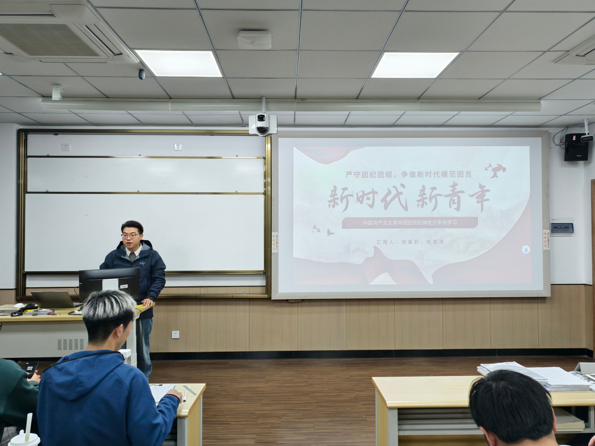 活动的第三个阶段,由22物师团支部和23物师团支部的两位团支书共同支持,他们带领两个支部的团员同志们一起深入学习了《中国共产主义青年团纪律处分条例(试行)》,团员同志们也结合自己的学习工作经历,展开了广泛的讨论。sm调教 团委书记张锡炜老师最后总结道,团纪处分条例是我们高质量开展共青团工作的底线和保障,工作还是要秉持“教育为主,宽严相济”的原则,希望广大团员同志严守团纪团规,争做青年学子表率。