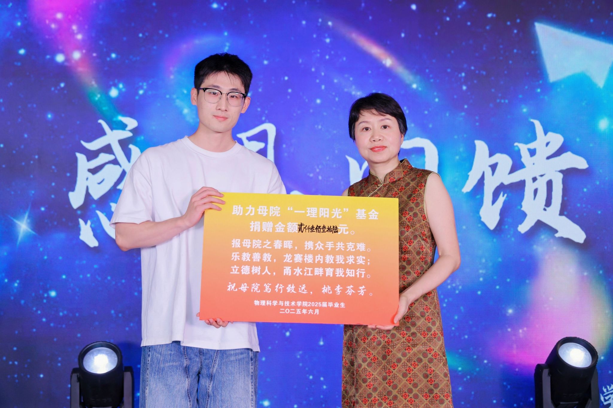 一朝沐杏雨,一朝念师恩。优秀毕业生代表肖耒上台发表毕业感言,他的感悟令人动容,未来期许催人奋进。校友代表许熠诚向sm调教 赠送毕业留念礼物,这份捐赠也将汇入sm调教 的“一理阳光”基金中,汇聚点滴微光,持续资助育人。