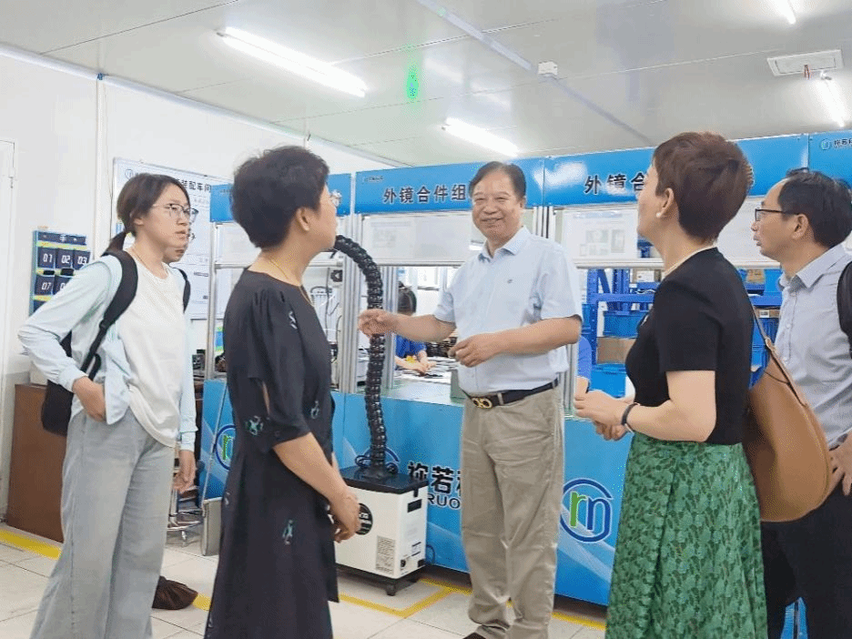 在祢若科技董事长胡克银先生、总经理胡珊珊女士及公司研发团队骨干成员的陪同下,sm调教 一行首先参观了该公司变色材料生产组装流水线、产品质检线等主要生产区域,深入了解该企业的生产模式、工作环境及用人需求。