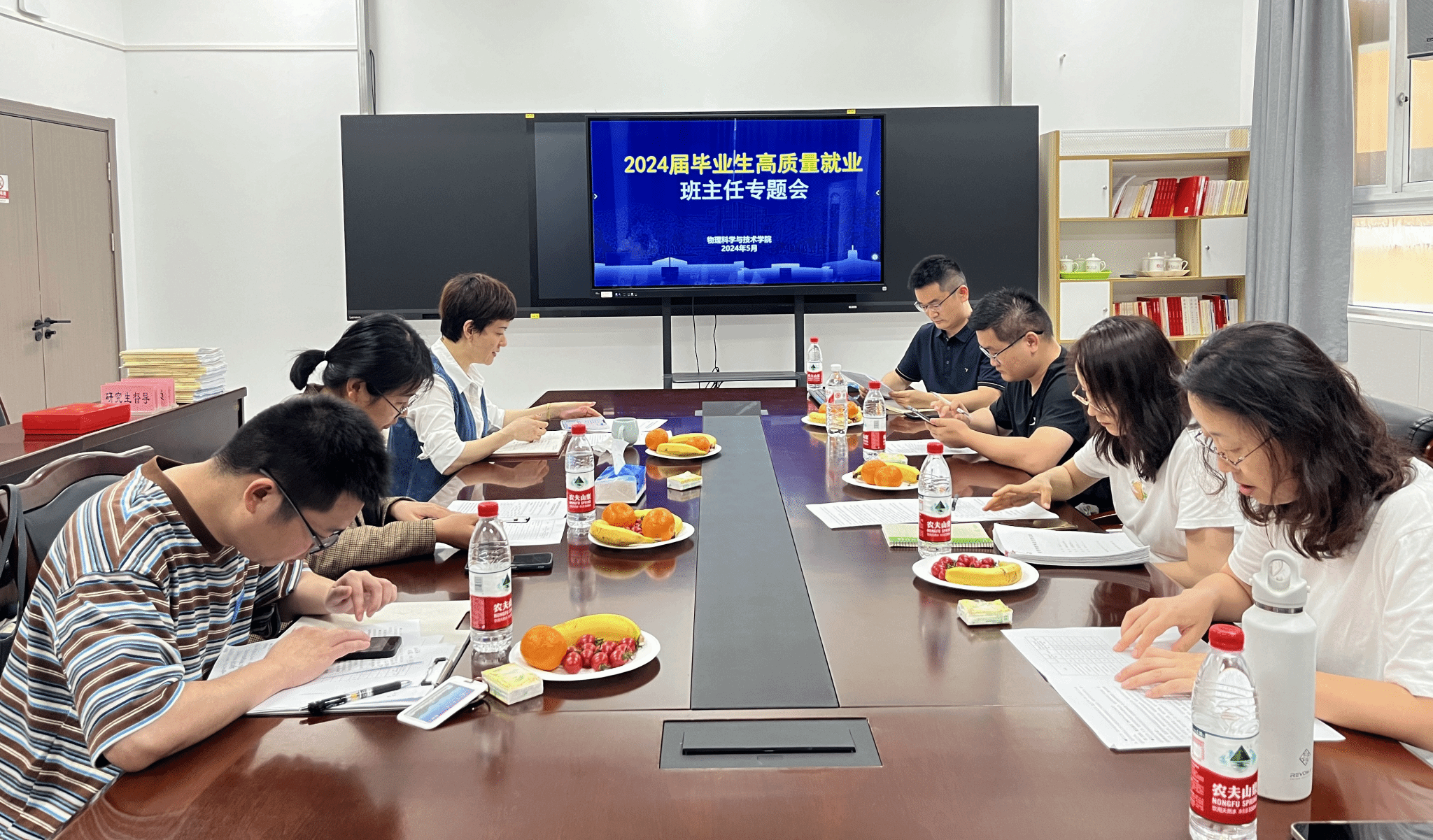 5月27日中午,物理sm调教 召开了以推进2024届毕业生高质量就业工作为主题的班主任专题培训会。sm调教 党委副书记刘小娣、2024届毕业班班主任以及学工办辅导员常文豪出席了此次会议。