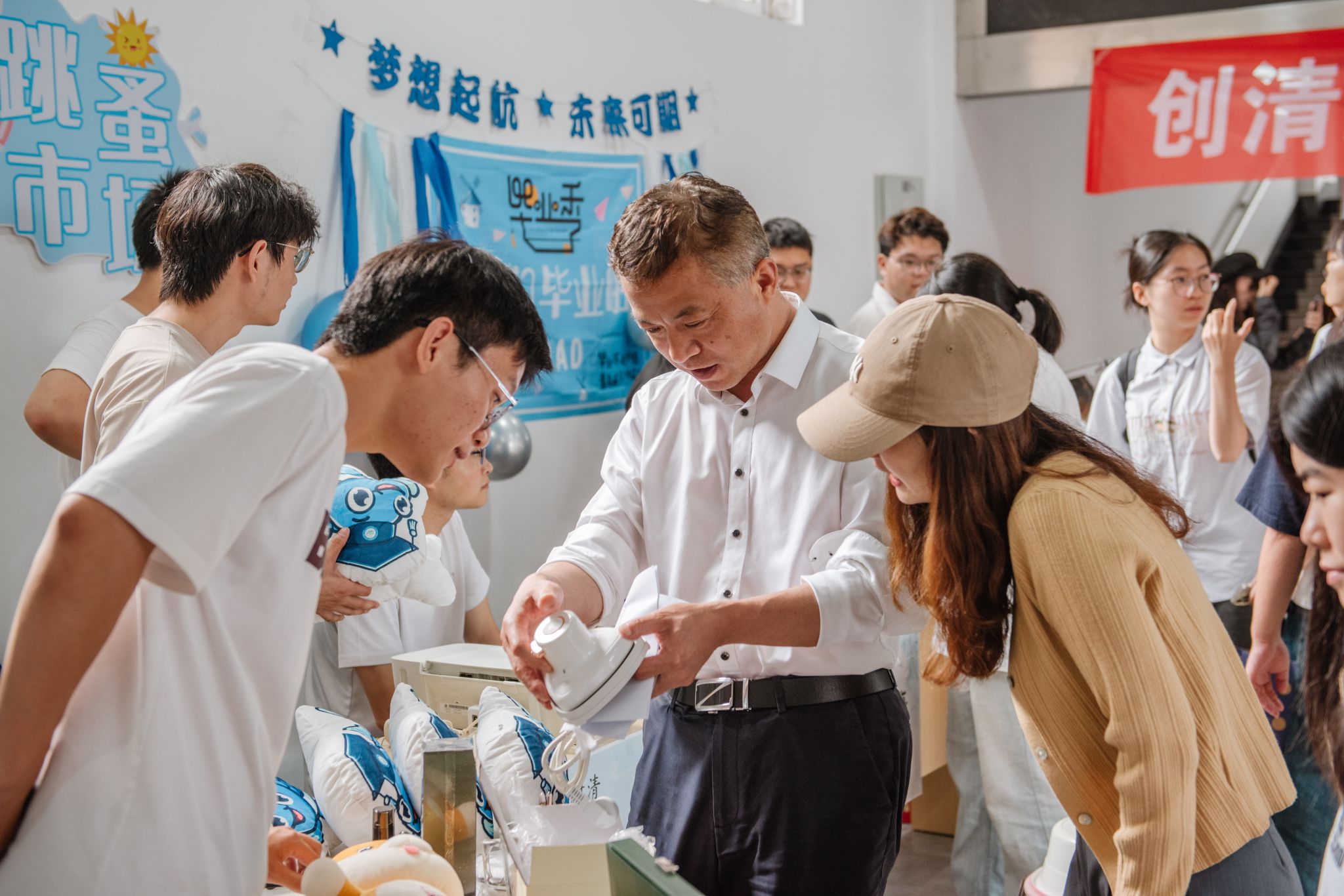 在龙赛理科楼一楼大厅举办首届“旧物不毕业,青春不散场”毕业季寝室跳蚤市场活动。活动从下午4点开始,毕业生们在sm调教